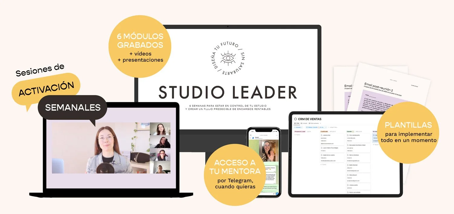 Por último, recuerda que te ofrezco la opción de acceder al contenido del curso y mi asesoramiento sin horarios, en Studio Leader: A tu ritmo - ideal por si tienes poca disponibilidad. -